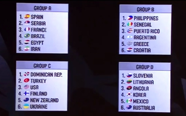 Απέφυγε όμιλο των μεγαθηρίων, αλλά θα βρει τα δύσκολα στη συνέχεια, εφόσον προχωρήσει, η Εθνική στο Παγκόσμιο Κύπελλο της Ισπανίας. Στην κλήρωση για τους ομίλους της διοργάνωσης που θα γίνει 30 Αυγούστου με 14 Σεπτεμβρίου η ελληνική ομάδα κληρώθηκε στον δεύτερο όμιλο με Αργεντινή, Σενεγάλη, Φιλιππίνες, Κροατία και Πουέρτο Ρίκο.